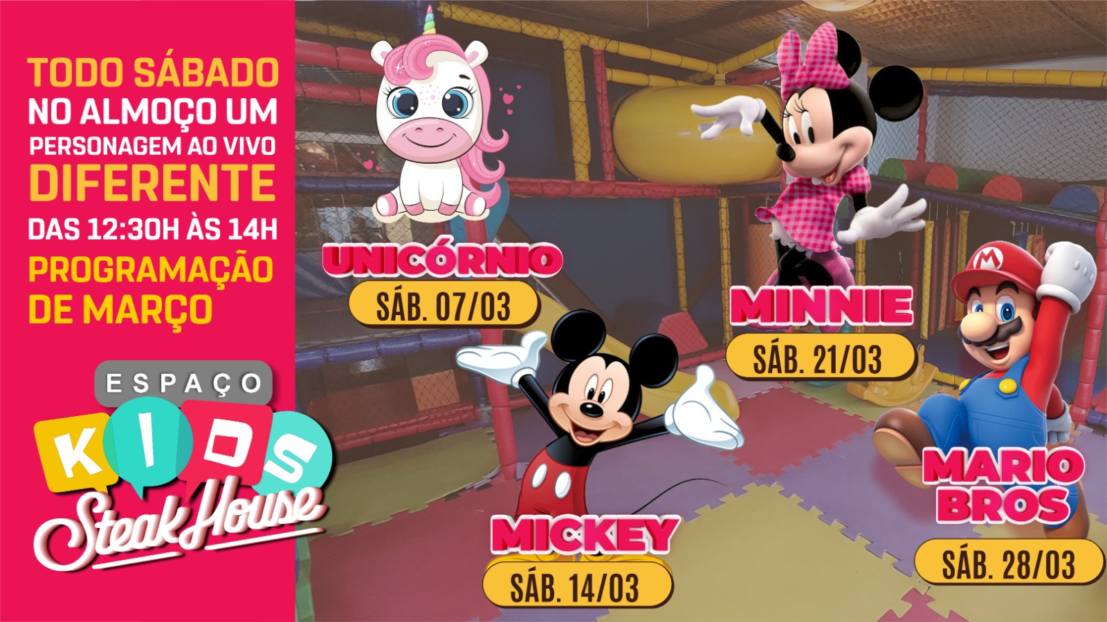 Aos sábados, programação especial: No almoço um personagem diferente “ao vivo” e no jantar uma oficina manual diferente com “atividades criativas e educativas”.